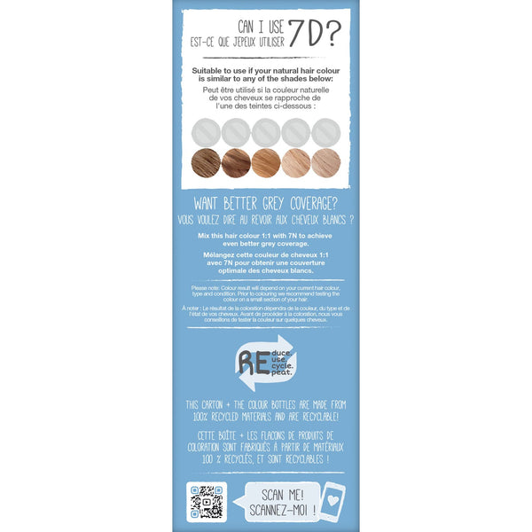 7D Colour Gel: PEG-2 Oleamine, Aqua, PEG-4 Rapeseedamide, Alcohol Denat., Propanediol, Oleic Acid, Ethanolamine, Parfum, Sodium Sulfite, Hydrolyzed Wheat Protein, PEG-7 Glyceryl Cocoate, p- Aminophenol, Sodium Hydrosulfite, p-Phenylenediamine, Ascorbic Acid, Tetrasodium Glutamate Diacetate, 2-Methylresorcinol, 4-Chlororesorcinol, 4-Amino-2-hydroxytoluene, Symphytum Officinale (Comfrey) Leaf Extract, Tocopherol, Aloe Barbadensis (Aloe Vera) Leaf Extract, Citrus Aurantium Dulcis (Orange) Peel Extract, Citrus Grandis (Grapefruit) Fruit Extract.
