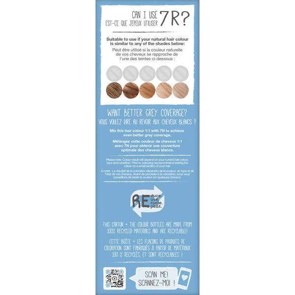 Tints of Nature 7R Soft Copper Blonde home hair dye has been carefully developed with over 75% certified organic and 95% naturally derived ingredients, to gently nourish and protect your hair for gentle, home hair colouring. Tints of Nature 7R will provide maximum colour performance and give long lasting results. At Tints of Nature we make sure all of our permanent home hair colours contain the lowest possible levels of PPD and remain ammonia, paraben and resorcinol free, so your hair can look and feel gorgeously healthy.