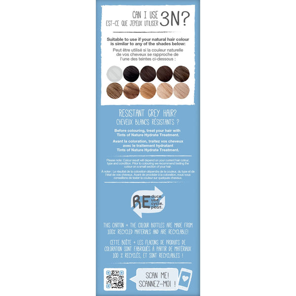 Tints of Nature 3N Natural Dark Brown home hair dye has been carefully developed with over 75% certified organic and 95% naturally derived ingredients to gently nourish and protect your hair for gentle, home hair colouring. Tints of Nature 3N will provide maximum colour performance and up to 100% grey coverage and give long lasting results. At Tints of Nature we make sure all of our permanent home hair colours contain the lowest possible levels of PPD and remain ammonia, paraben and resorcinol free, so your hair can look and feel gorgeously healthy.