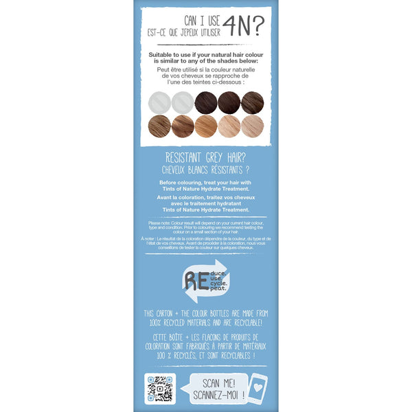 Rediscover happier, healthier hair with Tints of Nature 4N Natural Medium Brown patented permanent hair dye, for a luxurious and classic brunette hair colour.