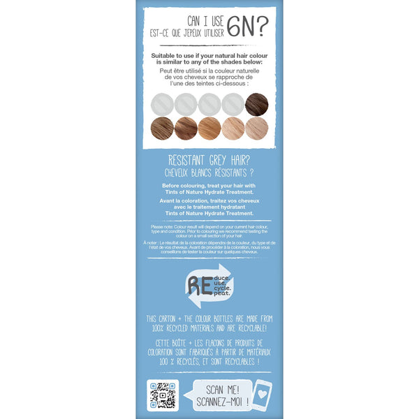 For example: If 5N is your natural shade or close to, you can use any colour within the 5 range or darker. If you want to lift your hair by one shade you can use 6N. Due to the gentle nature of our colour formulations, hair can only be lifted by one shade. To achieve a higher lift you will need the Tints of Nature Lightener Kit.